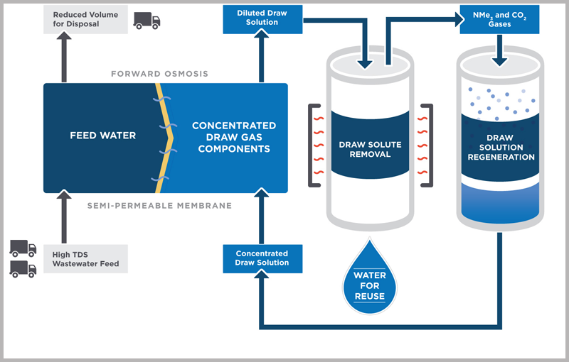 Forward Osmosis is an emerging membrane desalination technology which uses a semi permeable membrane to separate water from dissolved solutes wherein it blocks higher molecules utilizing the osmotic pressure gradient. It is very effective in rejecting wide range of contaminants and is very resistant to fouling. It gives us the advantages of having low energy cost with high water recovery.